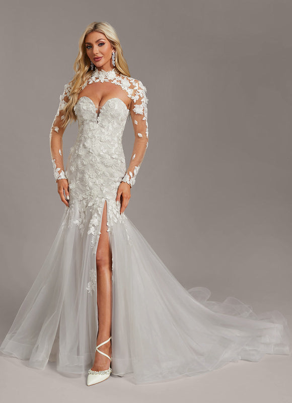 Laissez-vous envoûter par le tissu en dentelle délicat de cette robe, orné de motifs floraux 3D et de perles scintillantes qui captent la lumière à chaque mouvement. La forme sirène mettra en valeur vos courbes avec une élégance spectaculaire, tandis que la fente sur la jambe ajoute une touche de sensualité discrète et assure une liberté de mouvement gracieuse. Le col montant, entièrement orné de fleurs, est non seulement un détail de haute couture mais aussi un élément convertible, vous permettant de changer de look en un instant. Imaginez l'effet de ces fleurs délicates qui semblent flotter sur votre peau, créant une impression de légèreté et de raffinement. Avec sa doublure complète, son soutien-gorge intégré et ses armatures de maintien, cette robe assure un confort et un soutien parfaits, vous permettant de vous sentir à l'aise et en sécurité tout au long de la journée ou de la soirée. Le zip arrière discret garantit une finition impeccable, pour une allure sans faute.