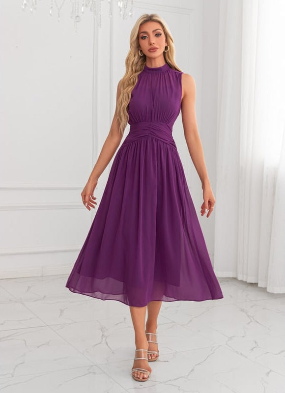 Le design de cette Robe Chic Midi Violette Élégante a été pensé pour sublimer toutes les silhouettes avec grâce. Son col montant apporte une touche de raffinement et d'élégance discrète, tandis que les détails plissés au niveau de la taille créent un effet structuré et flatteur, soulignant votre silhouette avec subtilité. La coupe trapèze, fluide et aérienne, assure un confort optimal tout en conférant à la robe une allure sophistiquée et intemporelle. Sa longueur midi est idéale, offrant le parfait équilibre entre chic et praticité, vous permettant de la porter avec des talons pour une occasion formelle ou des sandales pour un look plus décontracté. C'est une pièce polyvalente qui s'adapte à vos envies et à chaque moment de l'année.