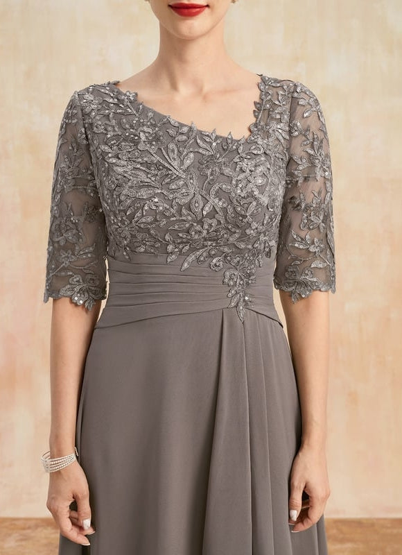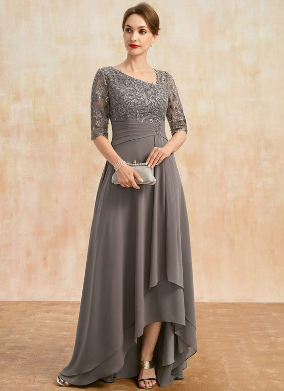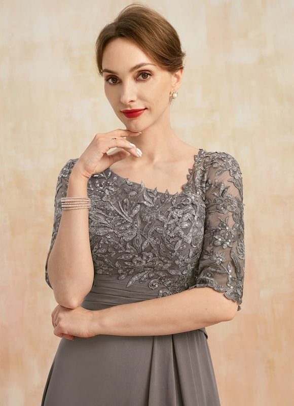 Chaque détail de cette Robe Chic Nuance De Lune a été pensé pour vous offrir une expérience vestimentaire exceptionnelle. Son col asymétrique audacieux encadre délicatement votre décolleté, ajoutant une touche moderne et artistique. Les manches trois-quarts en dentelle illusion, ornées de paillettes scintillantes, apportent une élégance intemporelle et une couvrance raffinée. La jupe asymétrique en mousseline plissée, plus courte à l'avant et s'allongeant gracieusement à l'arrière, crée un mouvement aérien et une silhouette dynamique qui ne manquera pas de faire tourner les têtes. Vous sentirez la légèreté de la mousseline flotter autour de vous, tandis que les paillettes discrètes scintilleront comme des étoiles, évoquant la beauté d'une nuit de lune. Avec son soutien-gorge intégré, elle vous assure un maintien parfait et un confort absolu, vous permettant de profiter pleinement de votre événement sans aucune contrainte.