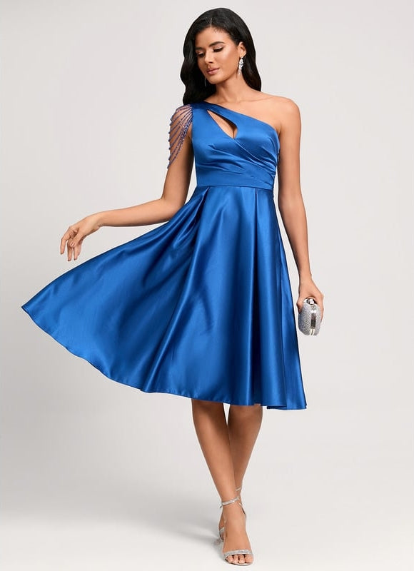 Chaque détail de la Robe Chic Satinélie Sereine a été pensé pour sublimer votre silhouette et captiver l'attention. Son décolleté asymétrique audacieux, rehaussé d'une découpe subtile, met en valeur vos épaules avec une touche de modernité. La cascade de perles délicatement brodées sur une épaule ajoute une dimension scintillante, capturant la lumière à chaque mouvement et créant un effet visuel saisissant. La jupe trapèze, plissée avec soin, offre un volume gracieux et une liberté de mouvement, vous permettant de danser et de vous déplacer avec aisance. Sa longueur midi est idéale pour toutes les occasions formelles, offrant un équilibre parfait entre sophistication et praticité. C'est une robe qui raconte une histoire de raffinement et de confiance en soi.