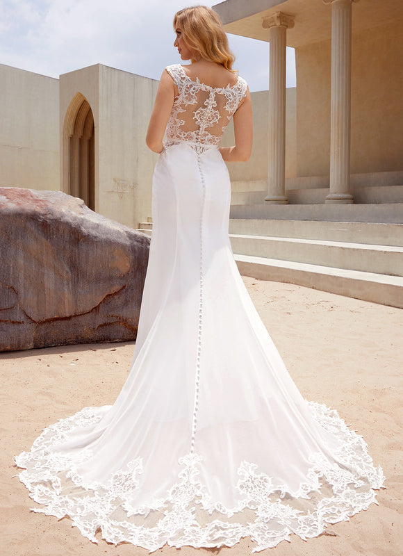 Cette magnifique robe chic sirène sophistiquée est un véritable chef-d'œuvre de design et de confort. Confectionnée en mousseline fluide, elle offre un tombé parfait et une sensation de légèreté incroyable, vous permettant de vous déplacer avec aisance et élégance tout au long de votre événement. Le col bateau met délicatement en valeur votre décolleté et vos épaules, tandis que les manches longues et les subtils détails de dentelle sur les côtés ajoutent une touche de mystère et de raffinement. Sa conception intègre un soutien-gorge pour un maintien optimal sans nécessiter de lingerie supplémentaire, vous offrant ainsi une silhouette lisse et impeccable. Le dos zippé assure un ajustement parfait et une facilité d'enfilage. Vous apprécierez l'absence de fente sur la jambe, garantissant une allure classique et continue, idéale pour les occasions formelles.