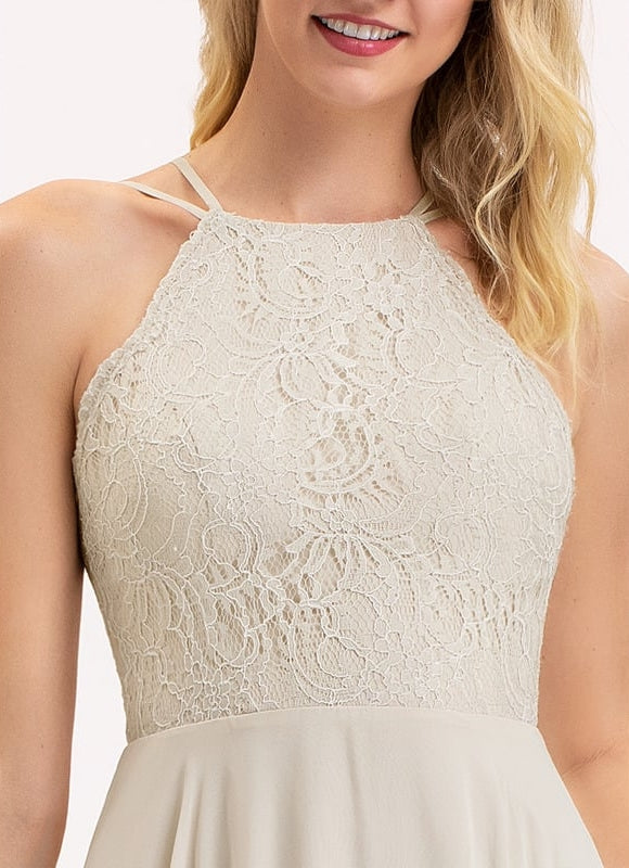 - Tissu : Mousseline fluide et dentelle délicate sur le corsage pour une touche de sophistication.