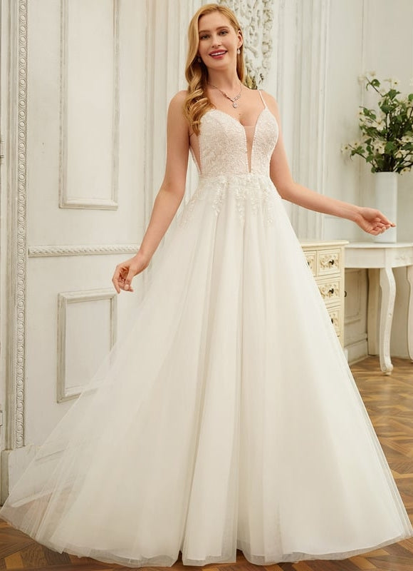 - Tissu : Dentelle raffinée pour le buste, jupe en tulle vaporeux.