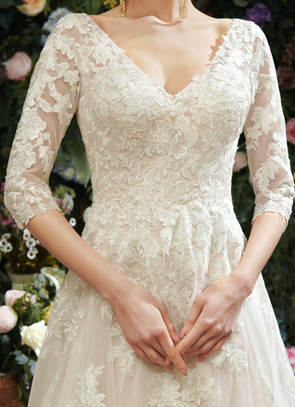 Plongez dans l'univers de cette pièce d'exception où chaque détail a été pensé pour sublimer votre beauté. Le tissu en dentelle de haute qualité offre un toucher doux et une richesse visuelle, créant des motifs floraux délicats qui attirent le regard sans être ostentatoires. Les paillettes, subtilement intégrées, ajoutent une touche de glamour discret, captant la lumière pour un effet étincelant et mémorable. Son élégant col en V met en valeur votre décolleté avec goût, tandis que les manches trois-quarts en dentelle apportent une touche de sophistication et de légèreté. La doublure complète assure une opacité parfaite et un confort supérieur, et grâce à son soutien-gorge intégré, vous bénéficiez d'un maintien optimal sans effort supplémentaire.